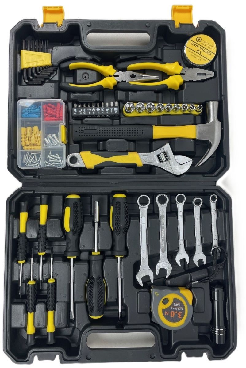 Deze gereedschapset is een zeer complete set voor de beginnende klusser. Met 88 handige onderdelen heb je altijd het juiste gereedschap binnen handbereik voor kleine reparaties, montagewerk of dagelijkse klusjes in en rondom het huis. Alles is overzichtelijk opgeborgen in een stevige kunststof koffer.